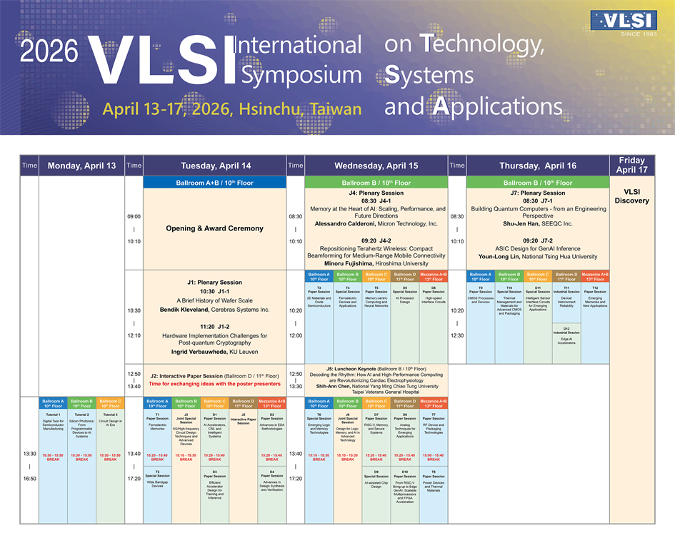 【VLSI TSA 國際研討會】將於 2026 年 4 月 13 至 17 日在新竹國賓大飯店盛大舉行。